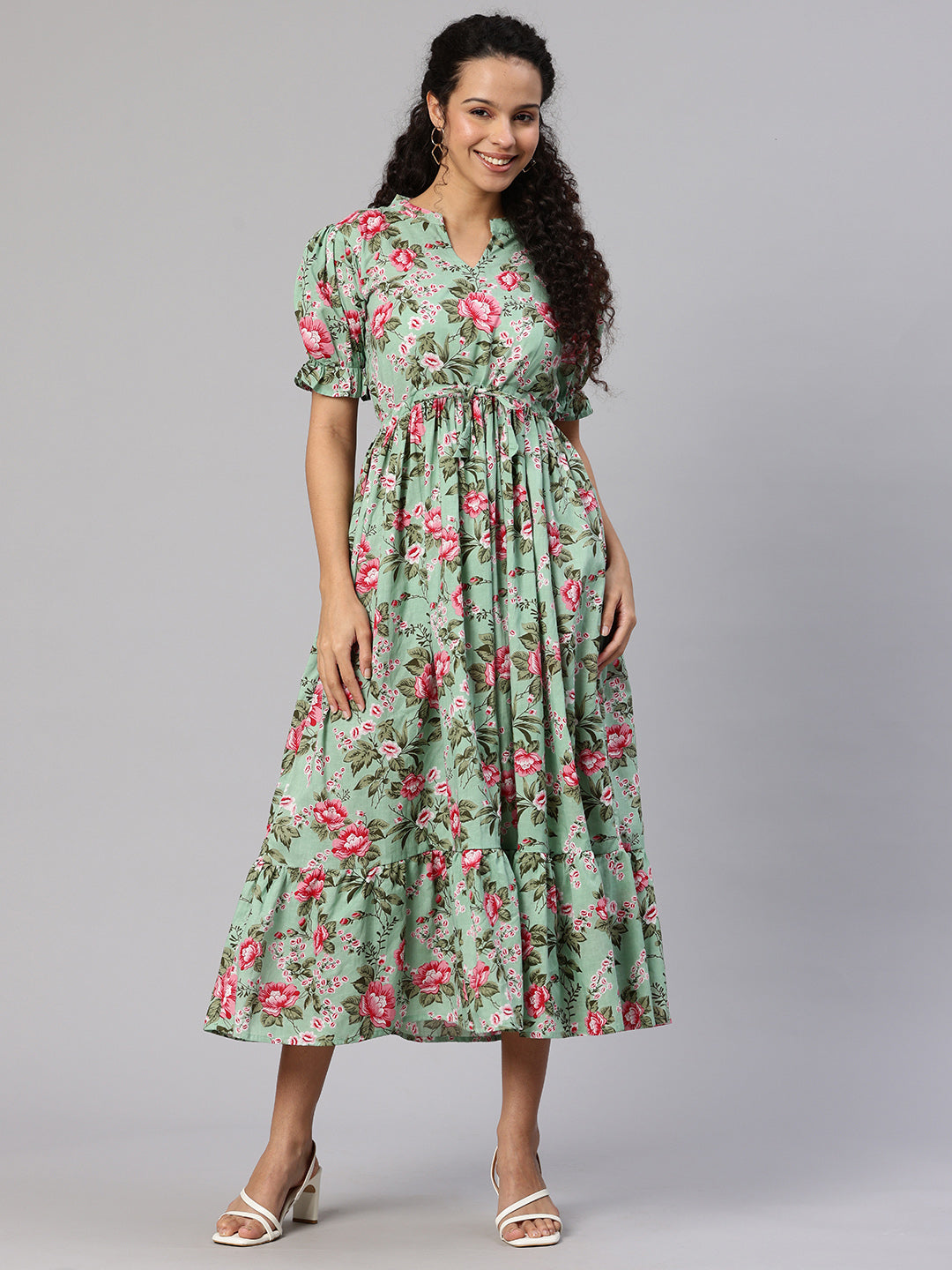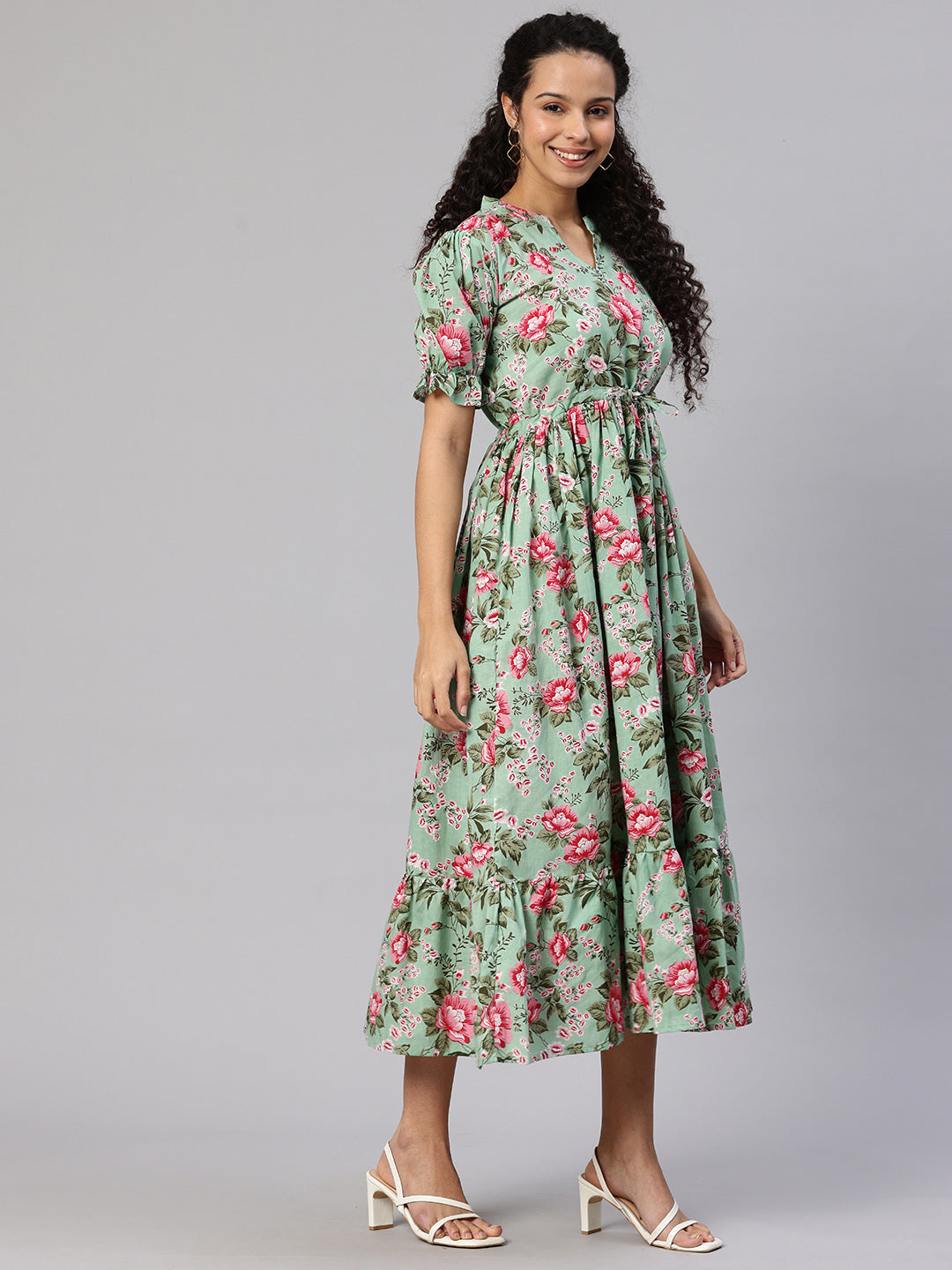 This elegant and comfortable dress is suitable for expecting moms and new moms. Create an absolute style high by going with this Green and multicoloured Floral Print Laced Maternity   piece in combination with a killer shoe and trendy bangles for a perfect brunch look.
